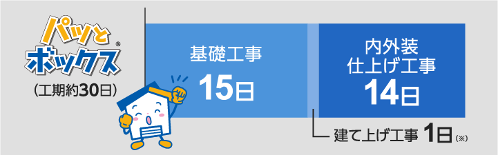 ※ 日数は参考値です。詳しくは弊社へお問い合わせください。 ※ 内外装の仕様、オプション、規模、建築場所など、諸条件により上記内容と異なる場合があります。