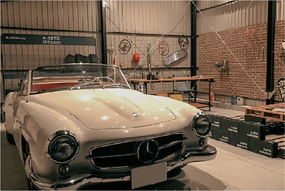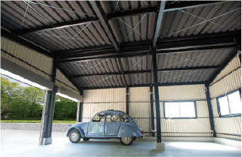 ガレージの活用はプライベートな利用だけではありません。 パッとボックスは頑丈な構造で耐食性に優れた特長をもち、さらに切妻風屋根、深い黒色が美しくビンテージ感のある壁面、スタイリッシュな木目調の破風など、その優れたデザイン性は店舗の利用にも適しています。お店オープンの夢をパッとボックスで実現を!