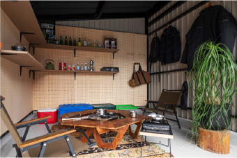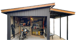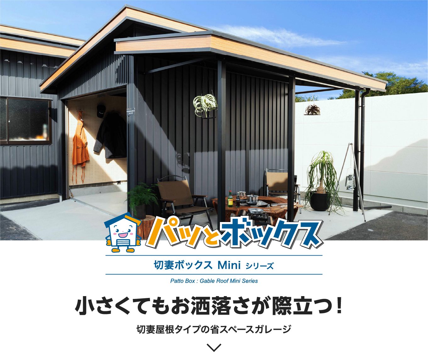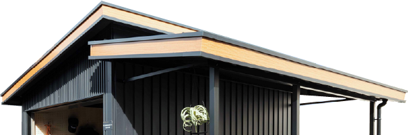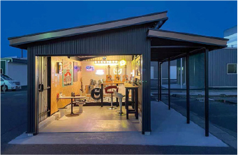 ガレージの活用はプライベートな利用だけではありません。 パッとボックスは頑丈な構造で耐食性に優れた特長をもち、さらに切妻風屋根、深い黒色が美しくビンテージ感のある壁面、スタイリッシュな木目調の破風など、その優れたデザイン性は店舗の利用にも適しています。お店オープンの夢をパッとボックスで実現を!