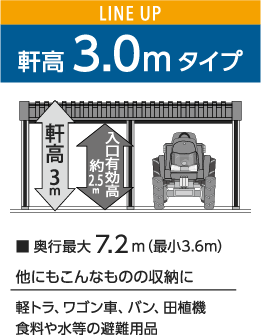また、建物は間口、高さ、奥行など、様々な条件に合った最適なプランをご提案し、施工に関するお悩みを解決。豊富なオプションもご用意しています。
