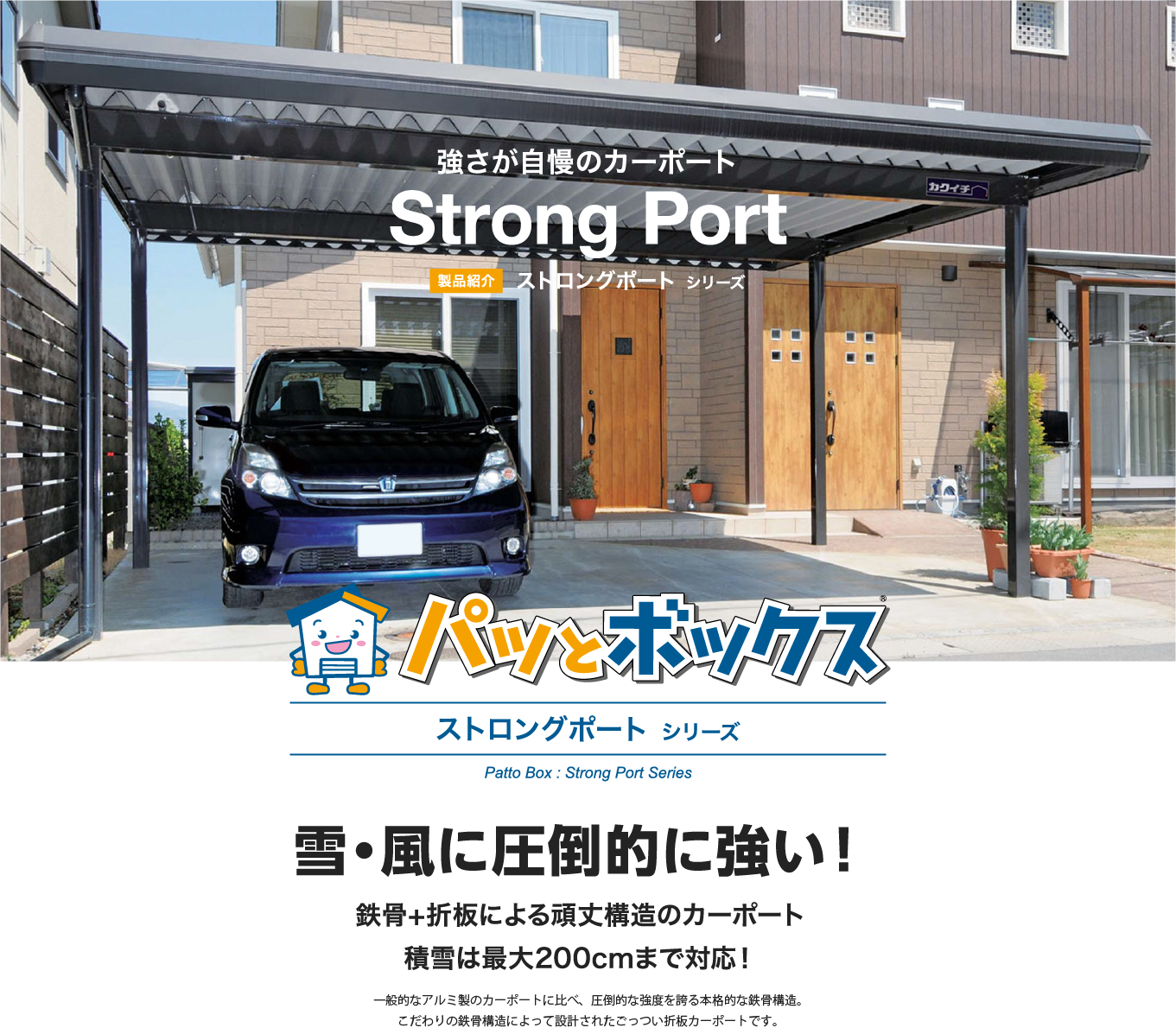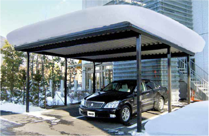 最深積雪量200cm(長期)に対応する鉄骨構造。積雪地域にお住まいの方にもご利用いただくために、積雪100cm、150cm、200cmのラインナップをそろえています。