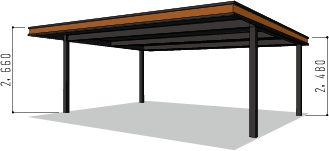頑丈な鉄骨柱構造なので高さ4.0mが可能です。大型トラック、バス、作業車の収納や軒の高い機械の作業場としてご利用可能です(規格高さは2.6mと3.1m)。