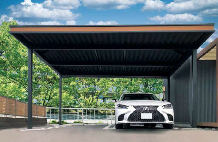屋根材には、耐食性・耐候性に優れたガルバリウム遮熱塗装鋼板を採用。夏の強い日差しによる屋根下の温度上昇を抑え、車内が熱くなるのを軽減。また結露軽減材を全機種に標準装備し、冬場の結露による水滴を軽減します。