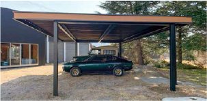 無骨でカッコいい!目を引く真っ黒なサテンブラックの カーポートが誕生。